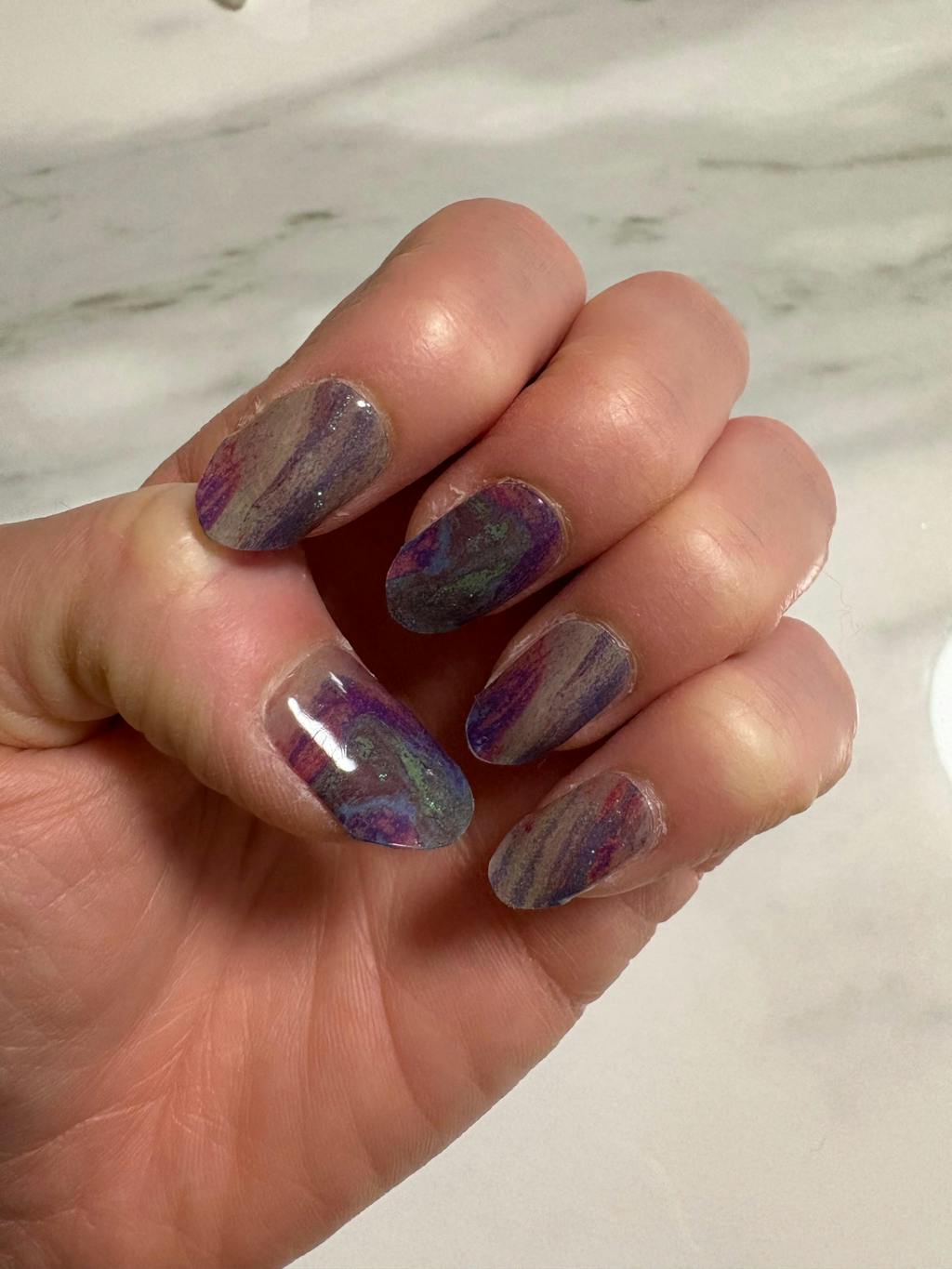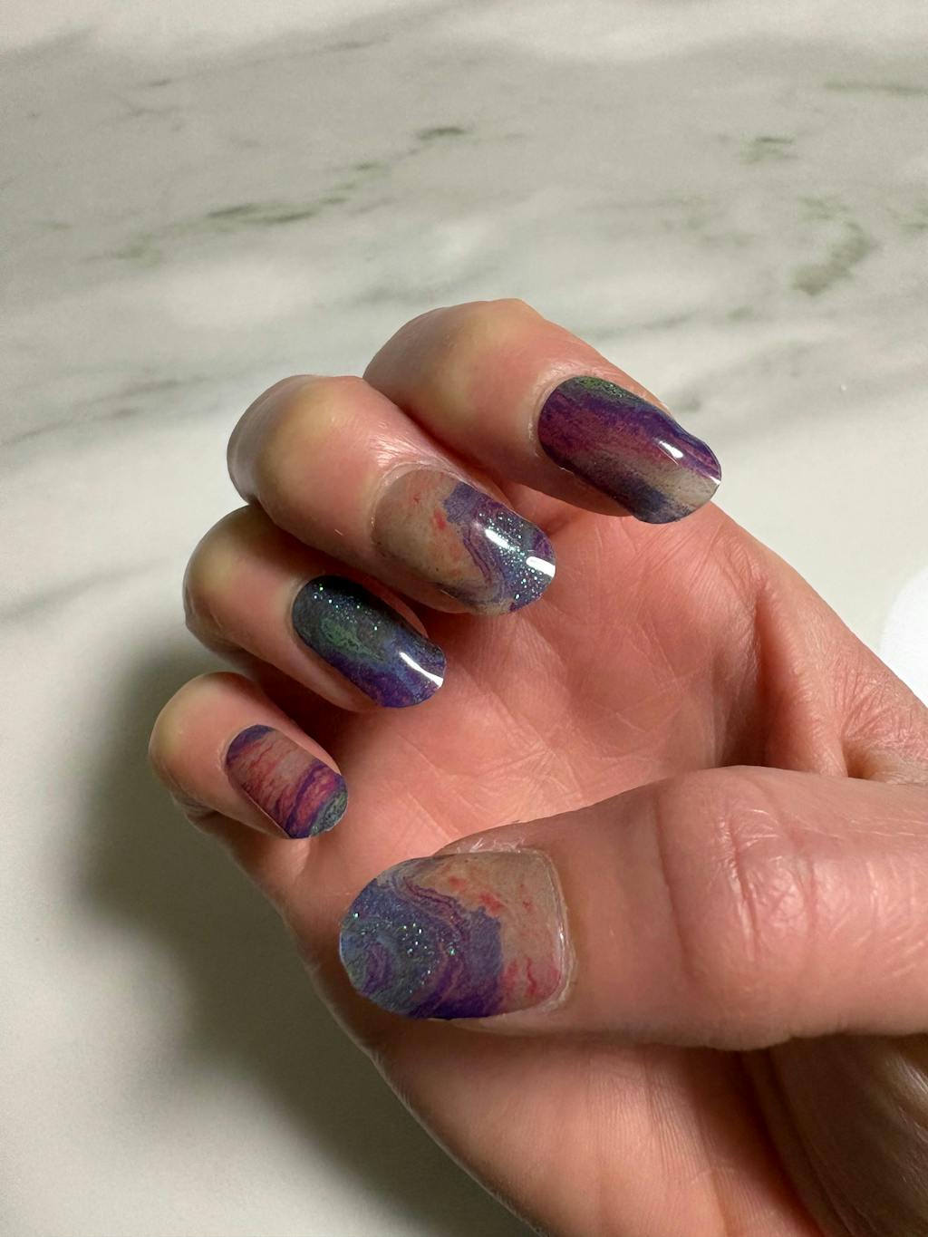 しっかりと爪の隅々まで圧着したら、取れることも欠けることもなく、綺麗な状態を保つことができました。 色味は物撮りよりも爪についている状態のイメージ画像が一番近い色です。派手すぎず、大人らしい雰囲気になります。 どんな服でも意外と合います。